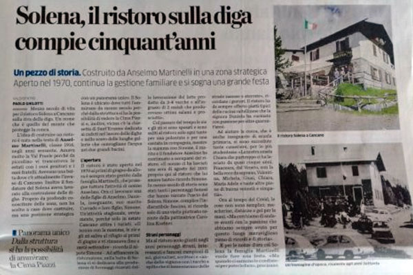 Il rifugio solena venne costruito nel 1970 dalla famiglia Martinelli e tuttora viene gestito dalla stessa. Anselmo, il capo famiglia, amava tanto la sua Val Fraele dove aveva passato l’infanzia con genitori, fratelli e zii quando ancora non erano presenti le grandi dighe costruite in valle. Tuttora la famiglia si impegna nella conduzione del rifugio con lo stesso entusiasmo e la stessa dedizione messi in luce ben 50 anni fa.
