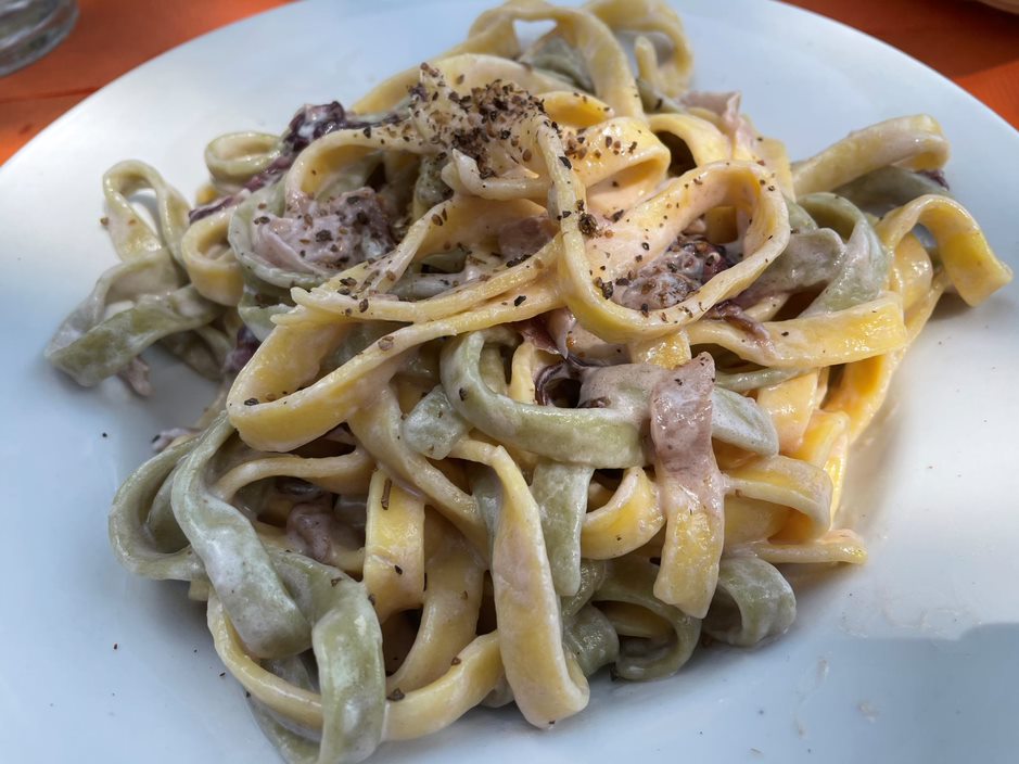 Proponiamo piatti tipici della tradizione valtellinese, utilizziamo prodotti a km 0, partiamo dalle materie prime locali per ottenere ricette semplici e genuine : la classica polenta taragna fatta nel paiolo in rame su fuoco vivo e accompagnata da selvaggina e funghi. Utilizziamo le verdure del nostro orto, affettati nostrani, formaggi locali prodotti dal casaro nella vicina malga di Pedenolo. In un contesto alpino, ma lacustre, vogliamo dare al cliente anche l’unicità dei nostri pesci di lago. Non solo tradizione ma anche piatti più ricercati e moderni. Un menù che cambia di giorno in giorno e che cerca di accogliere i gusti del cliente italiano in cerca di relax e buon cibo e dello straniero in bicicletta che vuole rifocillarsi rapidamente e ripartire leggero. Dolci golosi e fatti rigorosamente in casa. Ricca scelta di birra artigianale alla spina e vini valtellinesi.